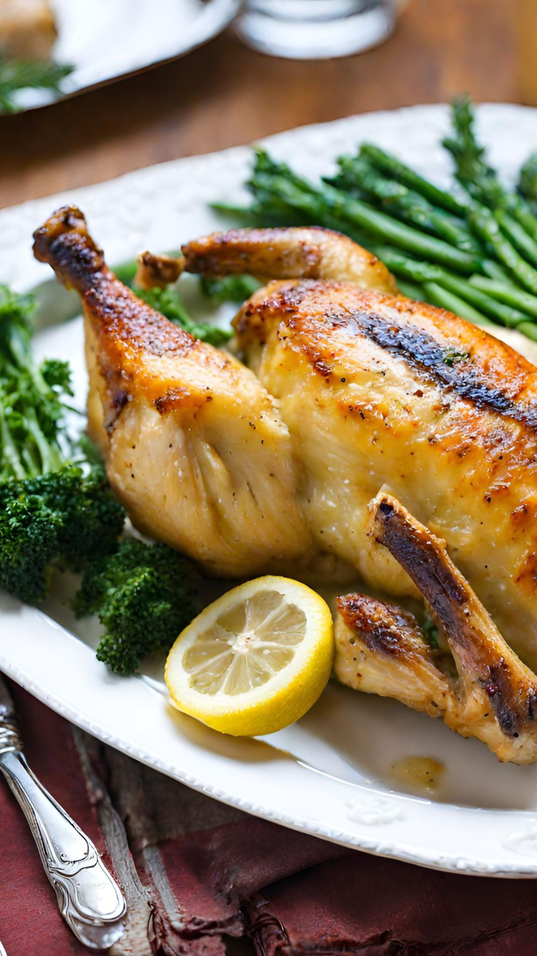 Ingredients: Whole Chicken, Lemons, Garlic, Olive Oil, Herbs (Rosemary/Thyme), Salt, Pepper. Cost Per Serving: Approx ¥25 Description: A hearty dish featuring a whole chicken marinated and roasted with a blend of lemon, garlic, olive oil, and herbs, resulting in a flavorful and juicy meal.